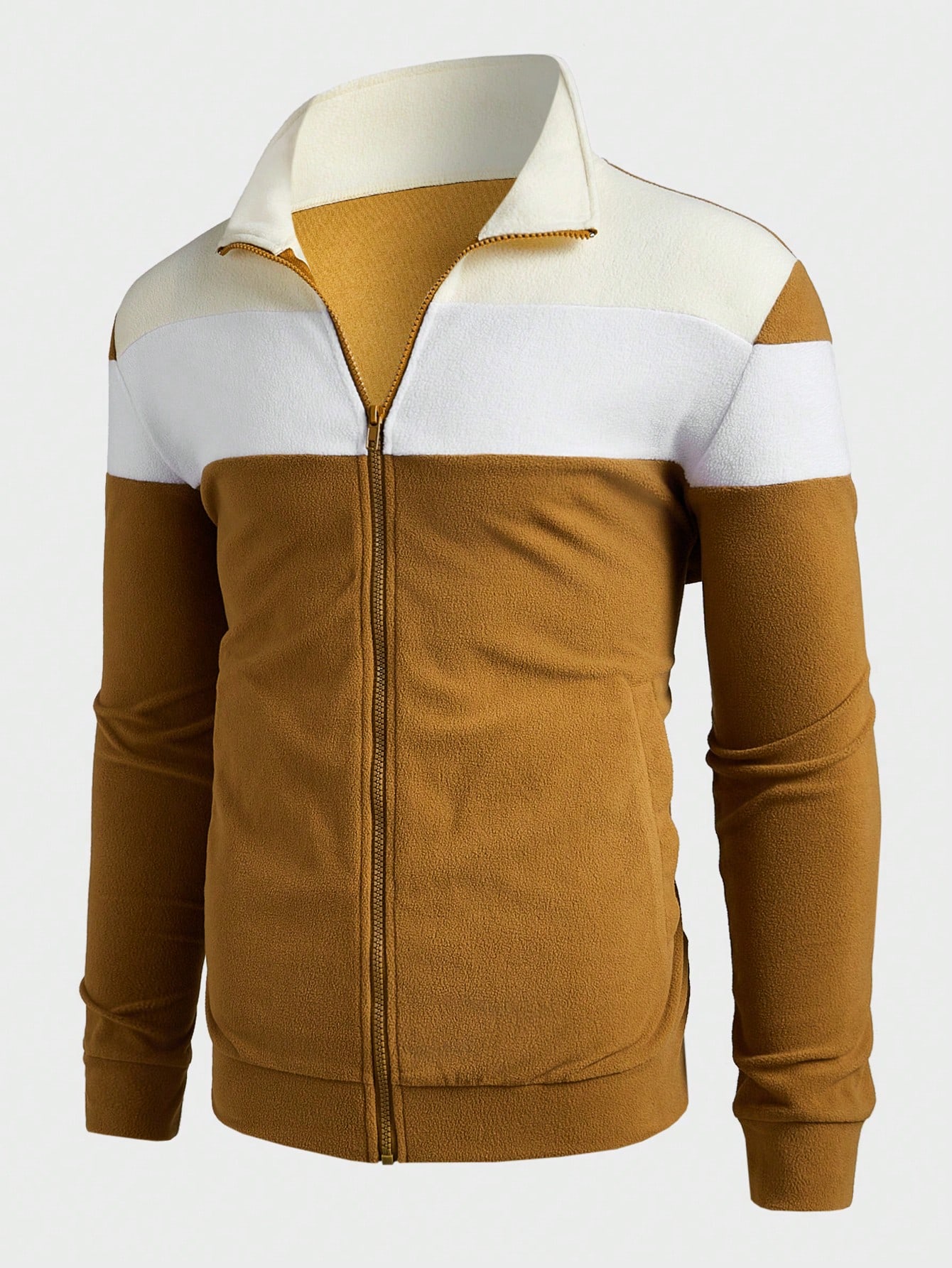 Manfinity KASUA Lightweight Plush Colorblock Stand Collar Casual Sweatshirt Sweatshirt, Autumn