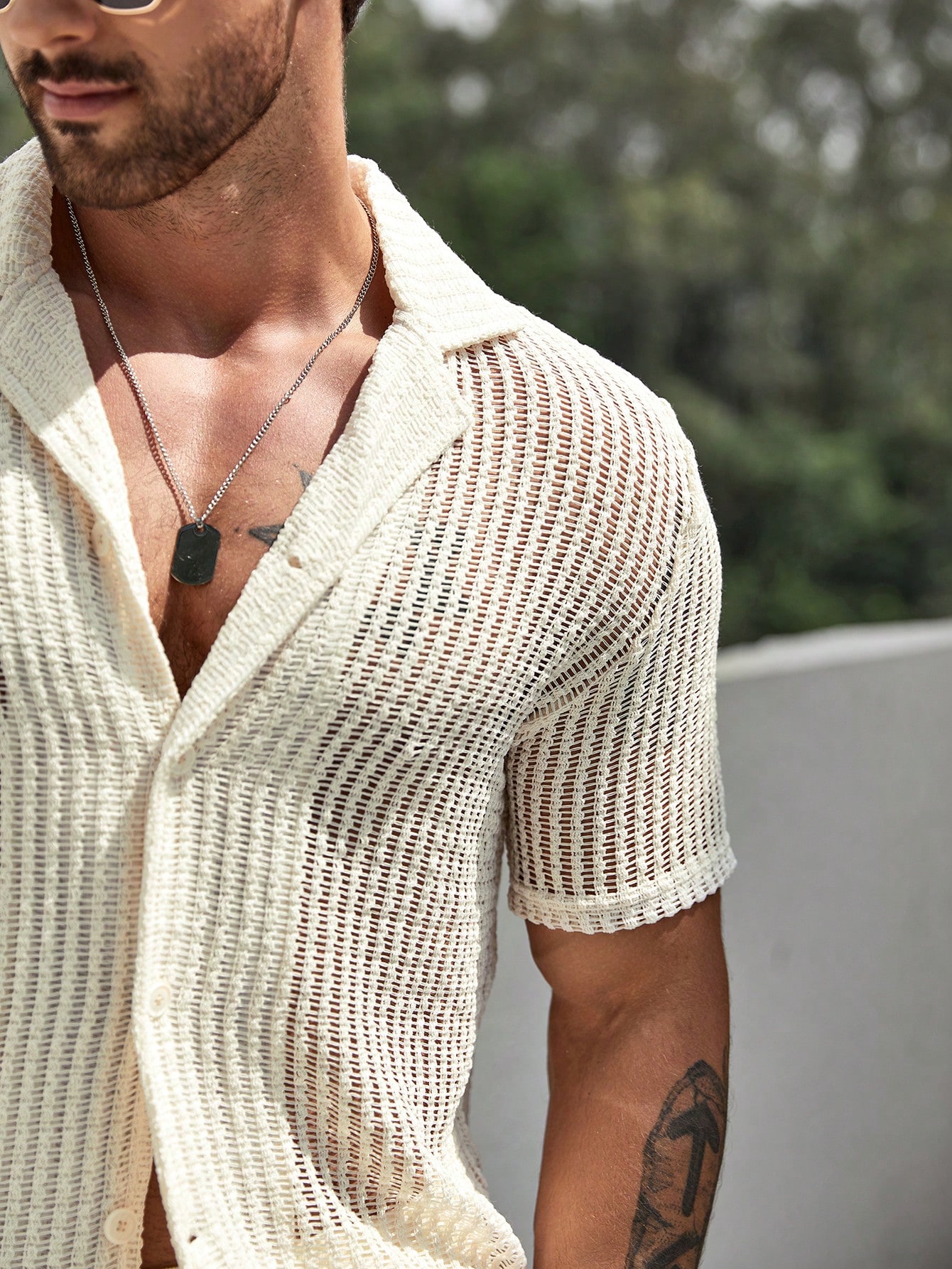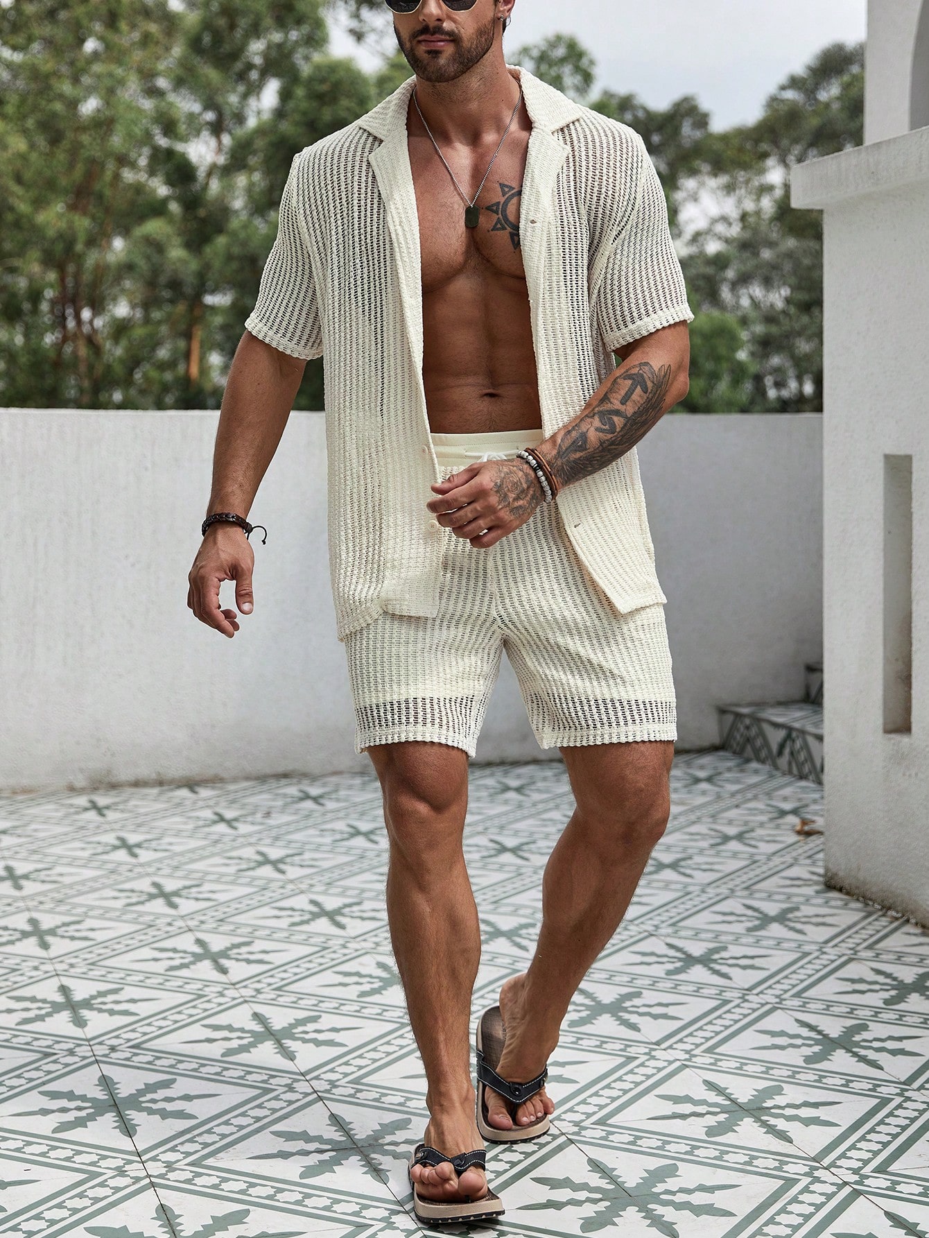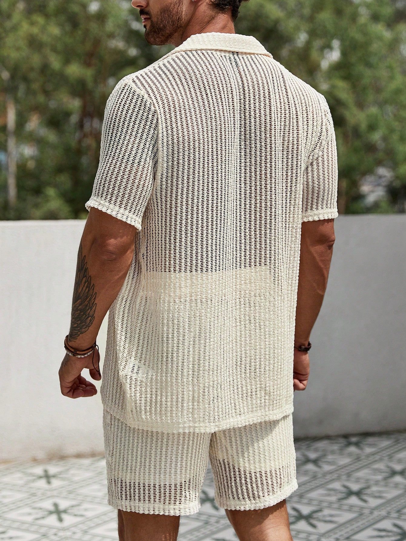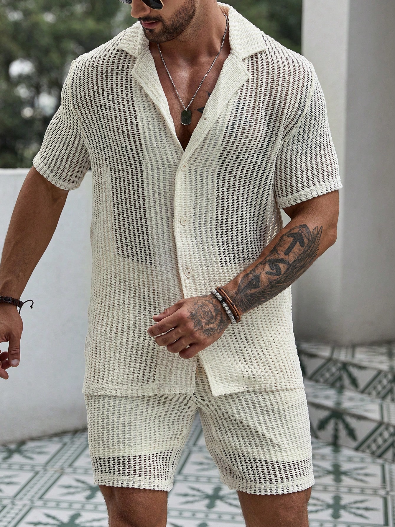 Manfinity KASUA Men Hollow Out Shirt & Drawstring Waist Shorts