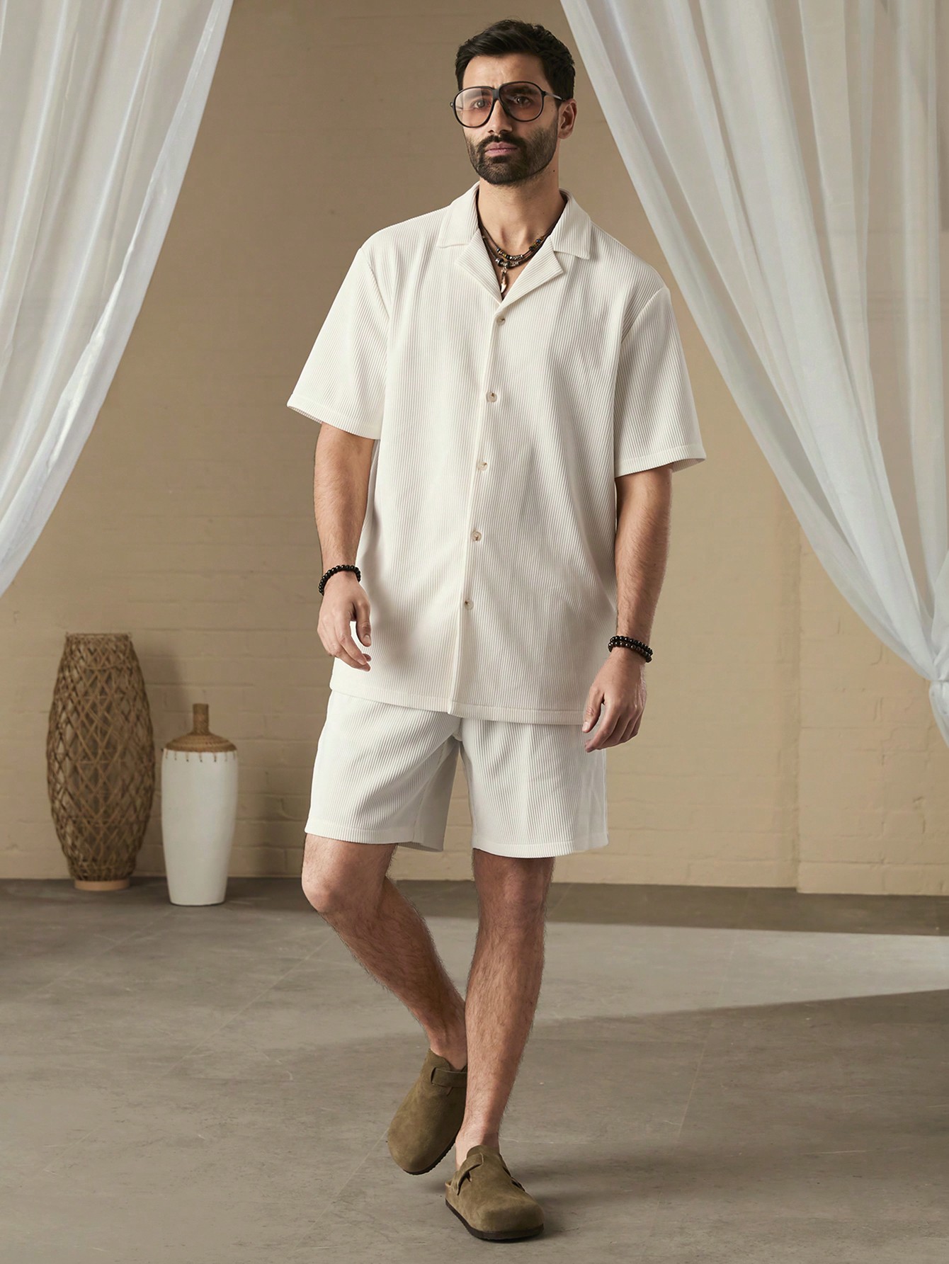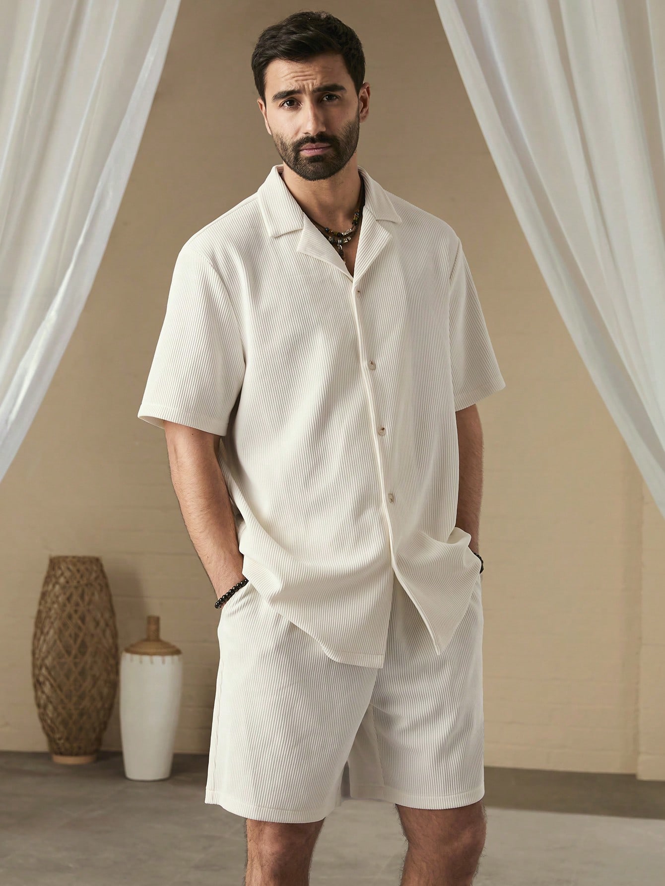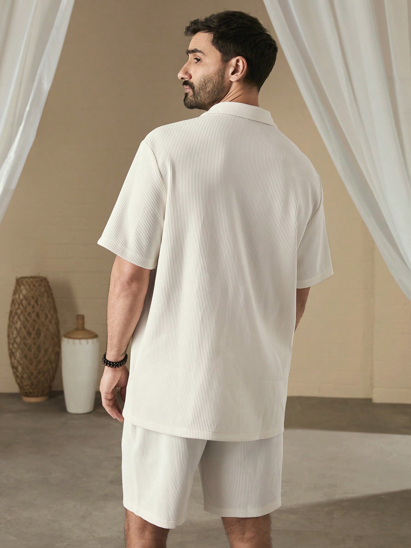 成为第一个“Manfinity KASUA Men Simple Solid Color Short Sleeve Shirt And Shorts Set” 的评价者