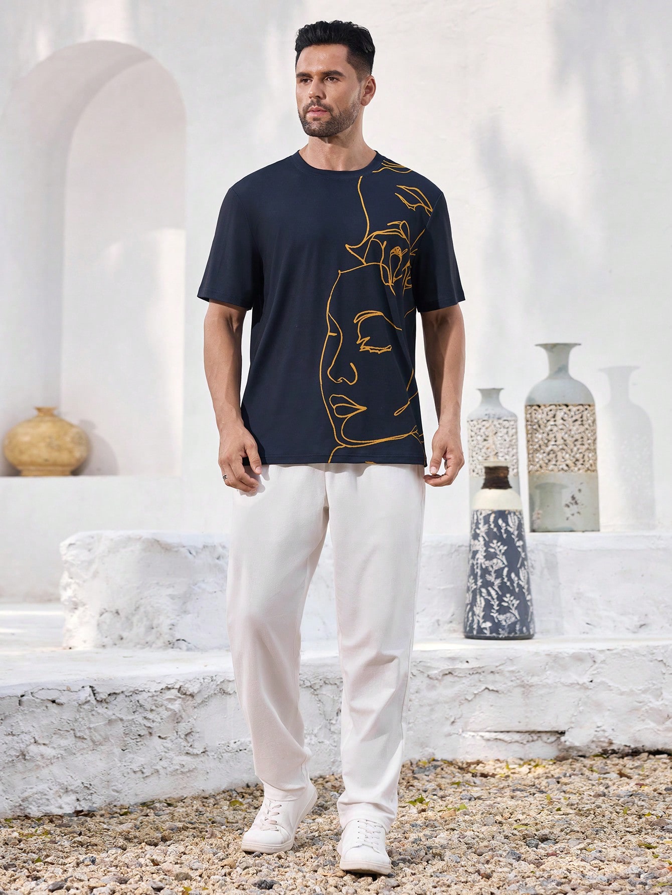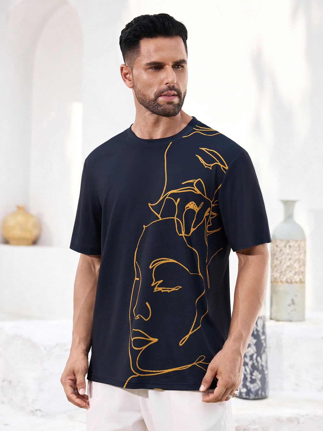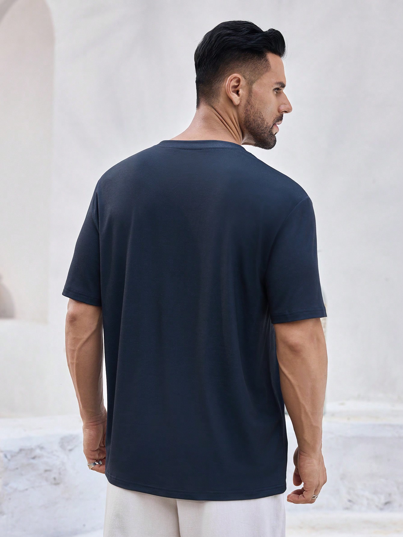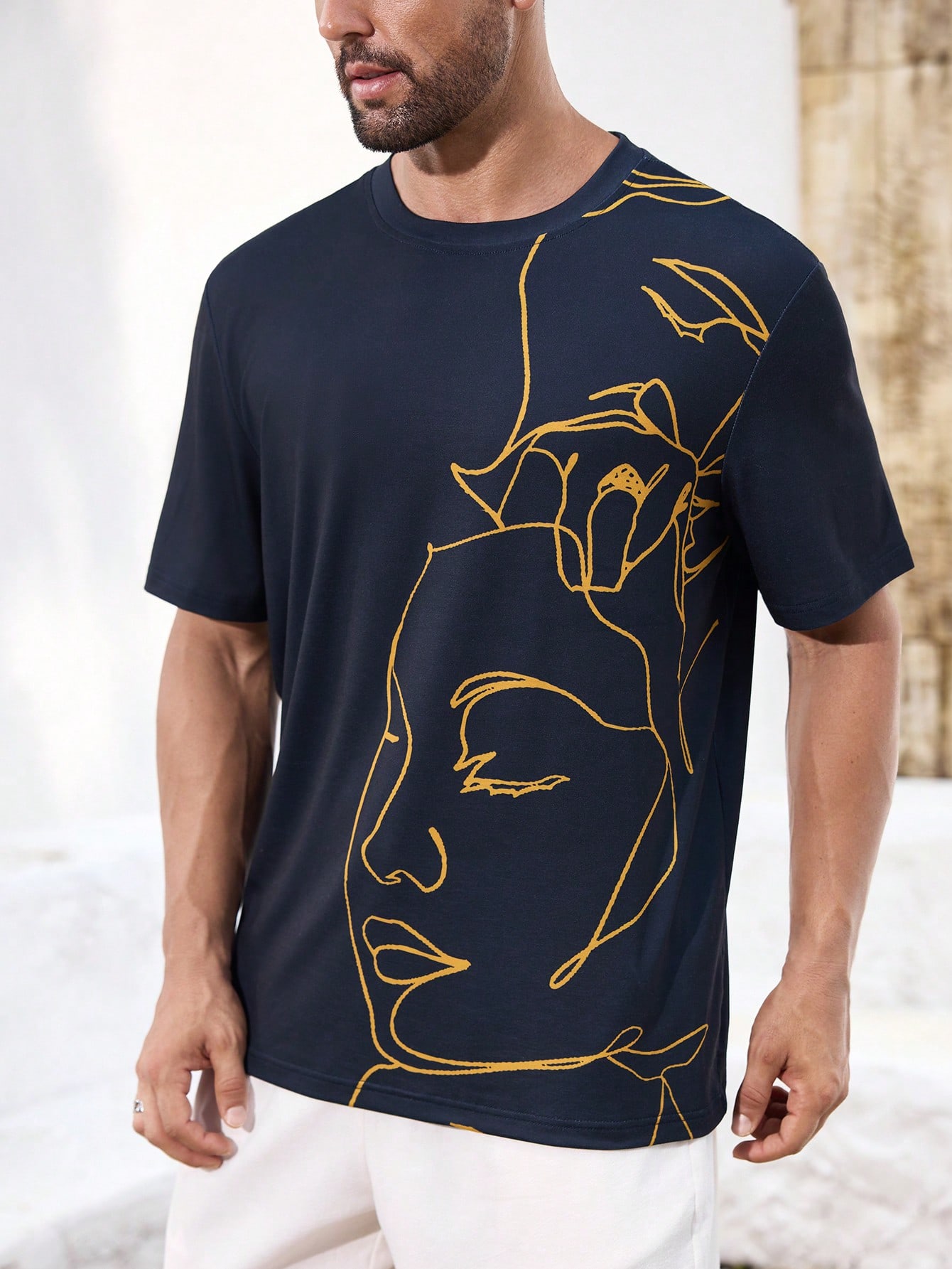 成为第一个“Manfinity KASUA Men’s Abstract Line Pattern Navy Blue Casual T-Shirt, Daily Wear, Streetwear, Party, Breathable” 的评价者