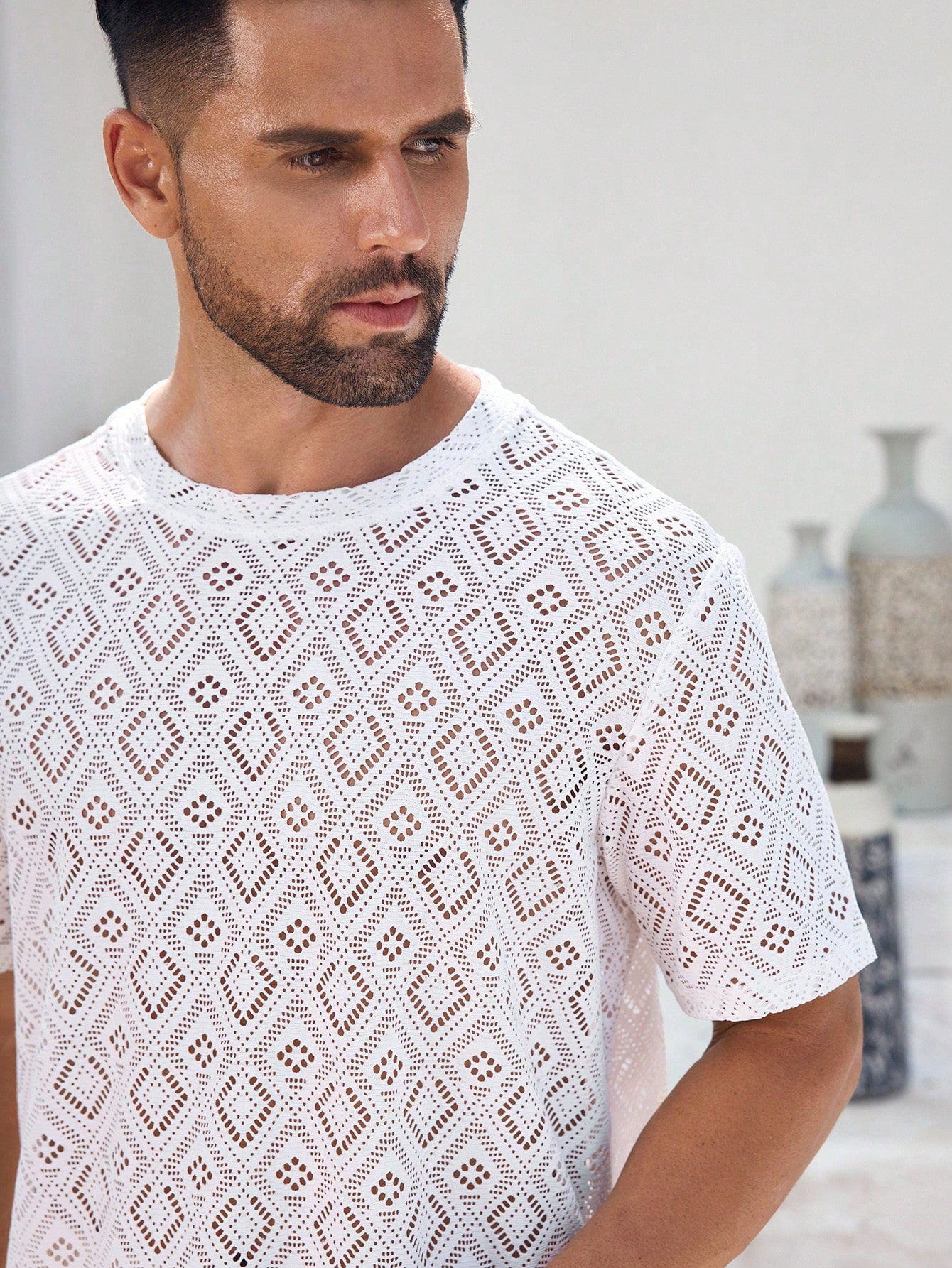 Manfinity KASUA Men’s Knitted Breathable Casual Vacation Daily Wear Soft Comfortable Beige T-Shirt
