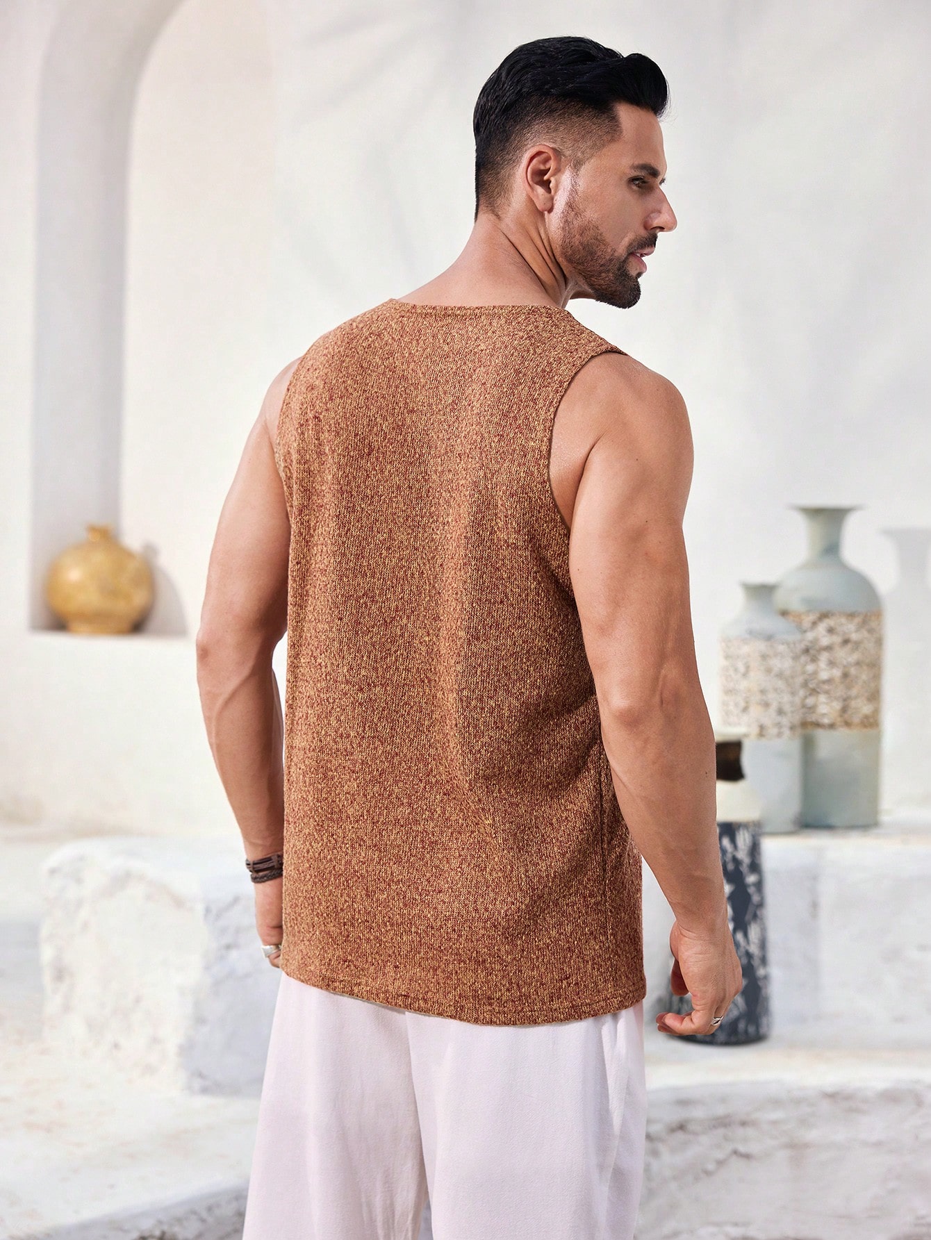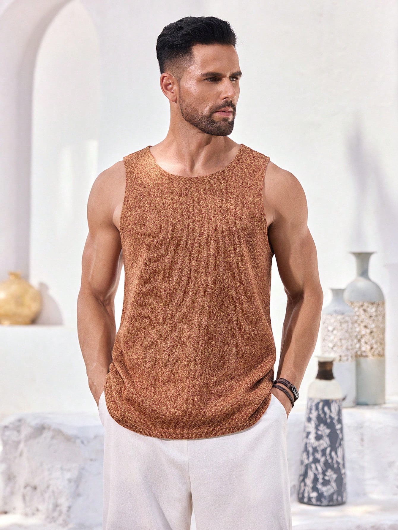 Manfinity KASUA Men’s Orange Knitted Sweater Tank Top, Soft And Comfortable Daily Casual