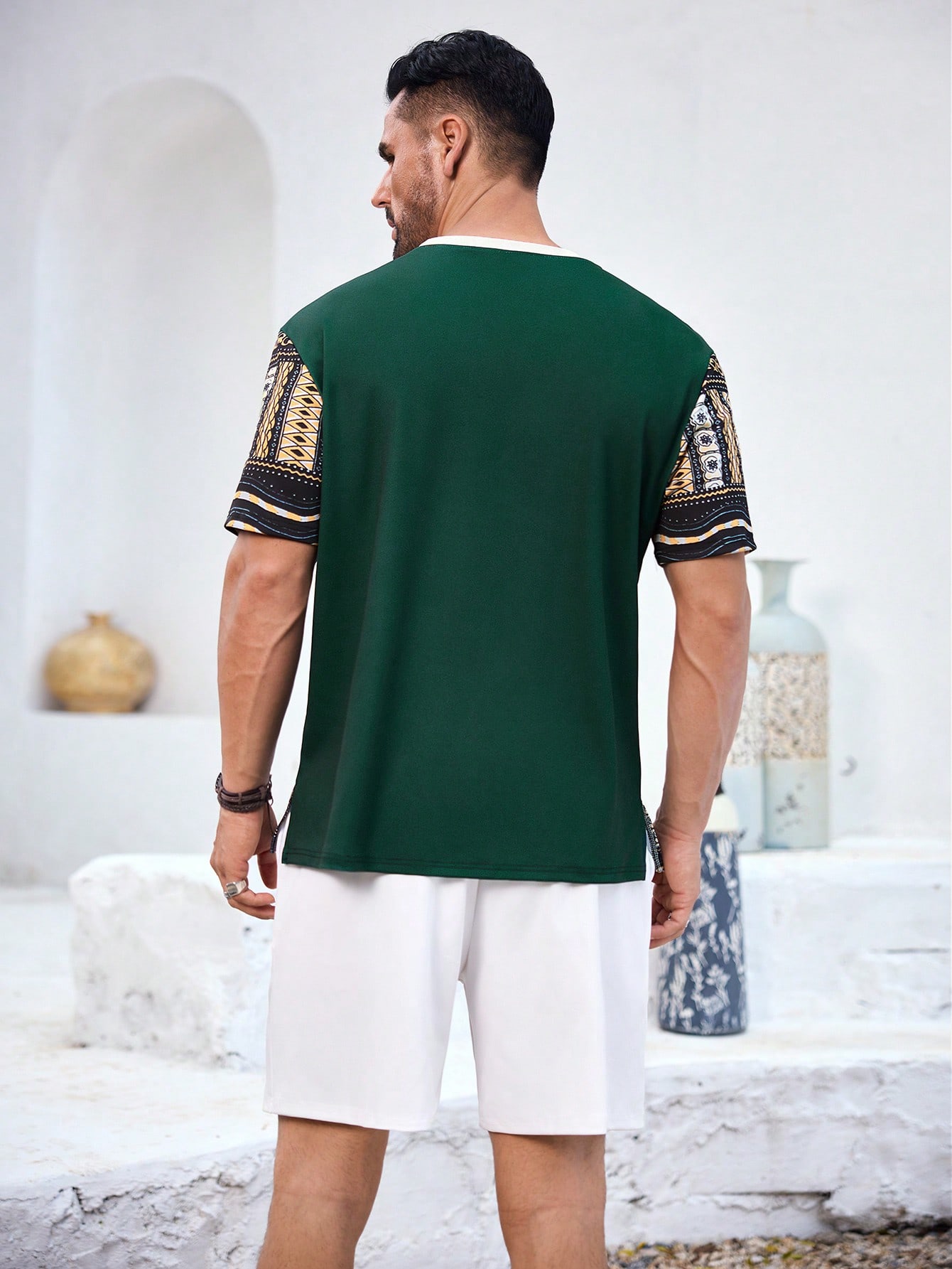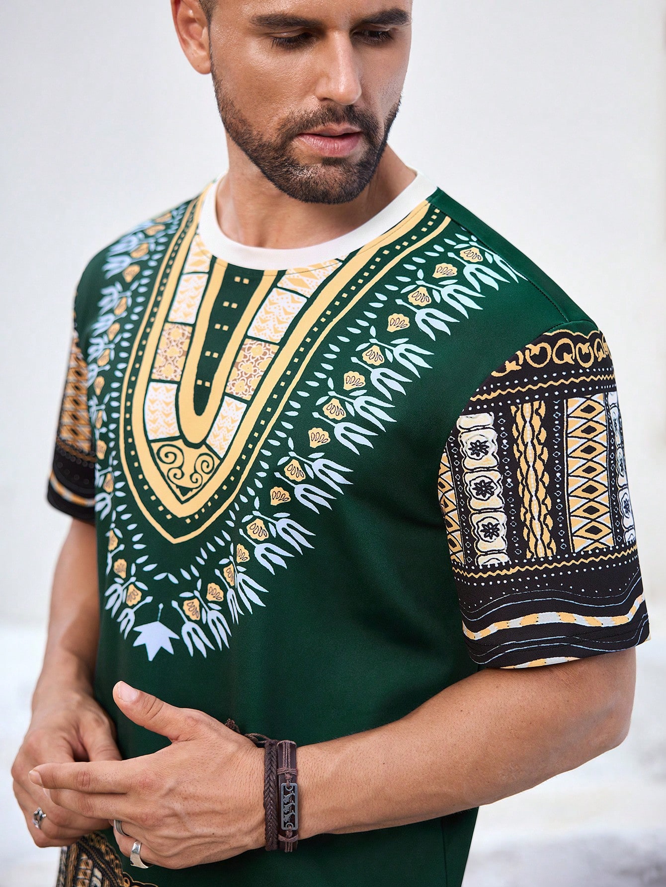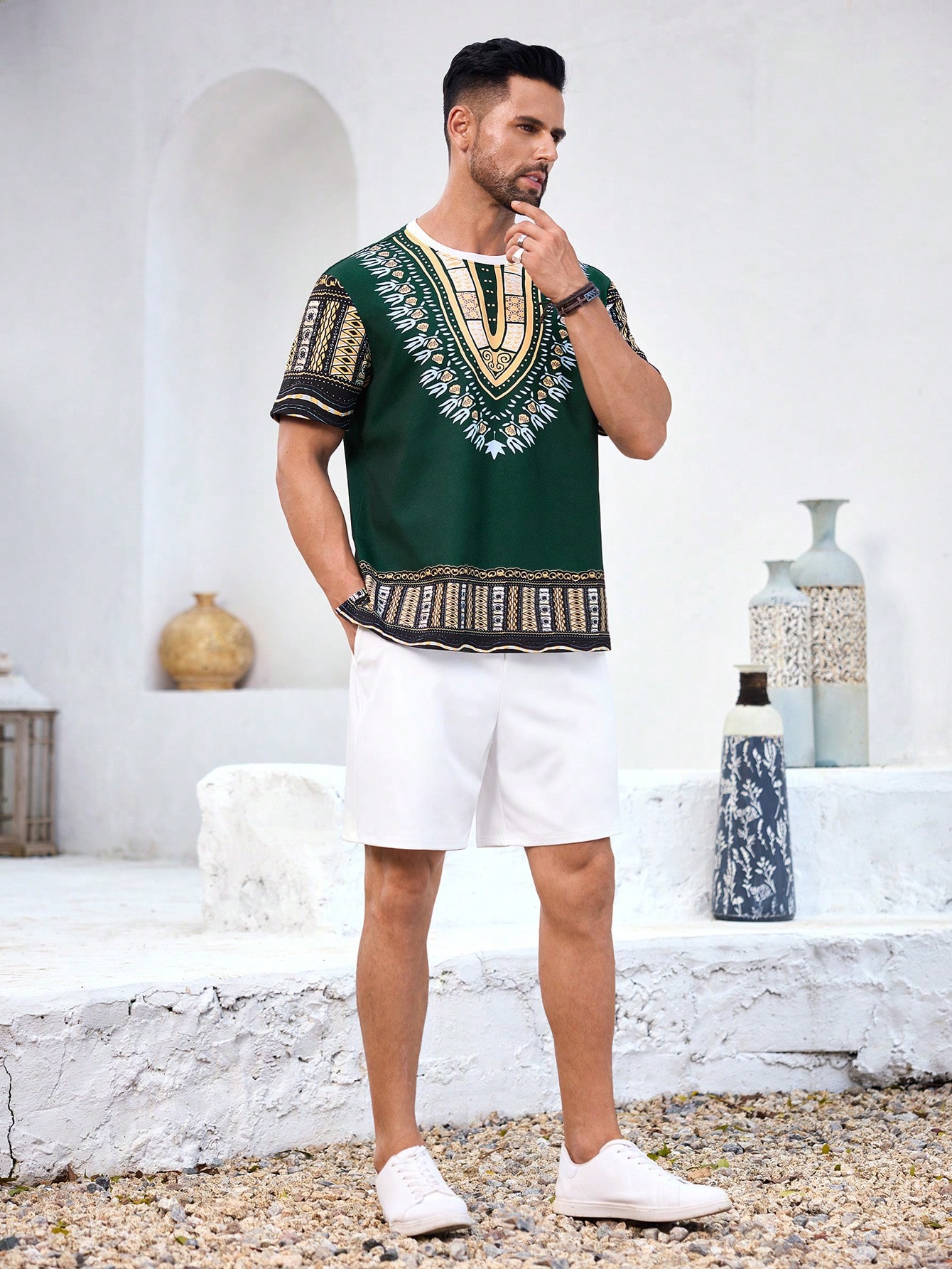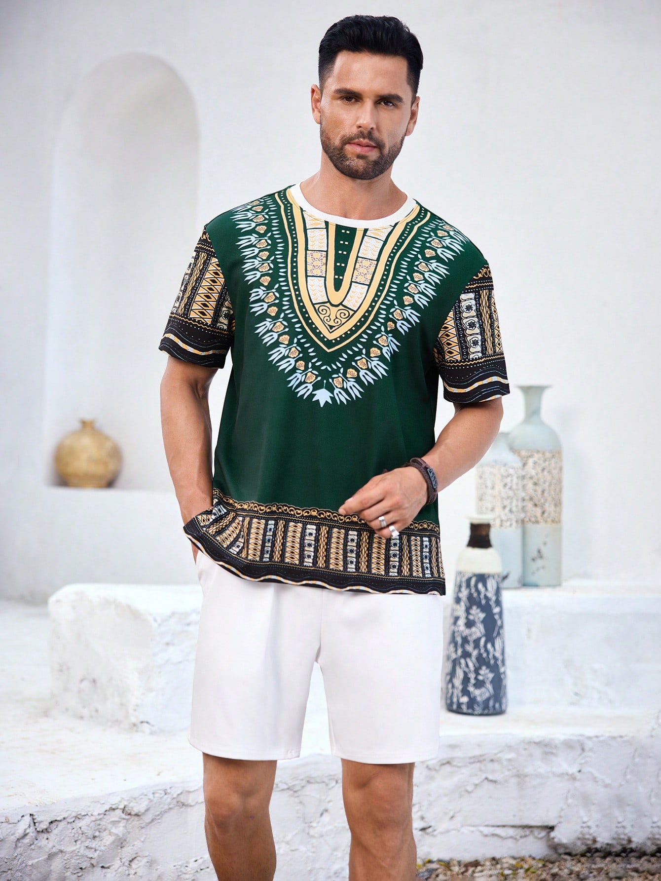 Manfinity KASUA Men’s Retro Print T-Shirt Set, Comfortable & Breathable For Casual, Daily & Festival Wear