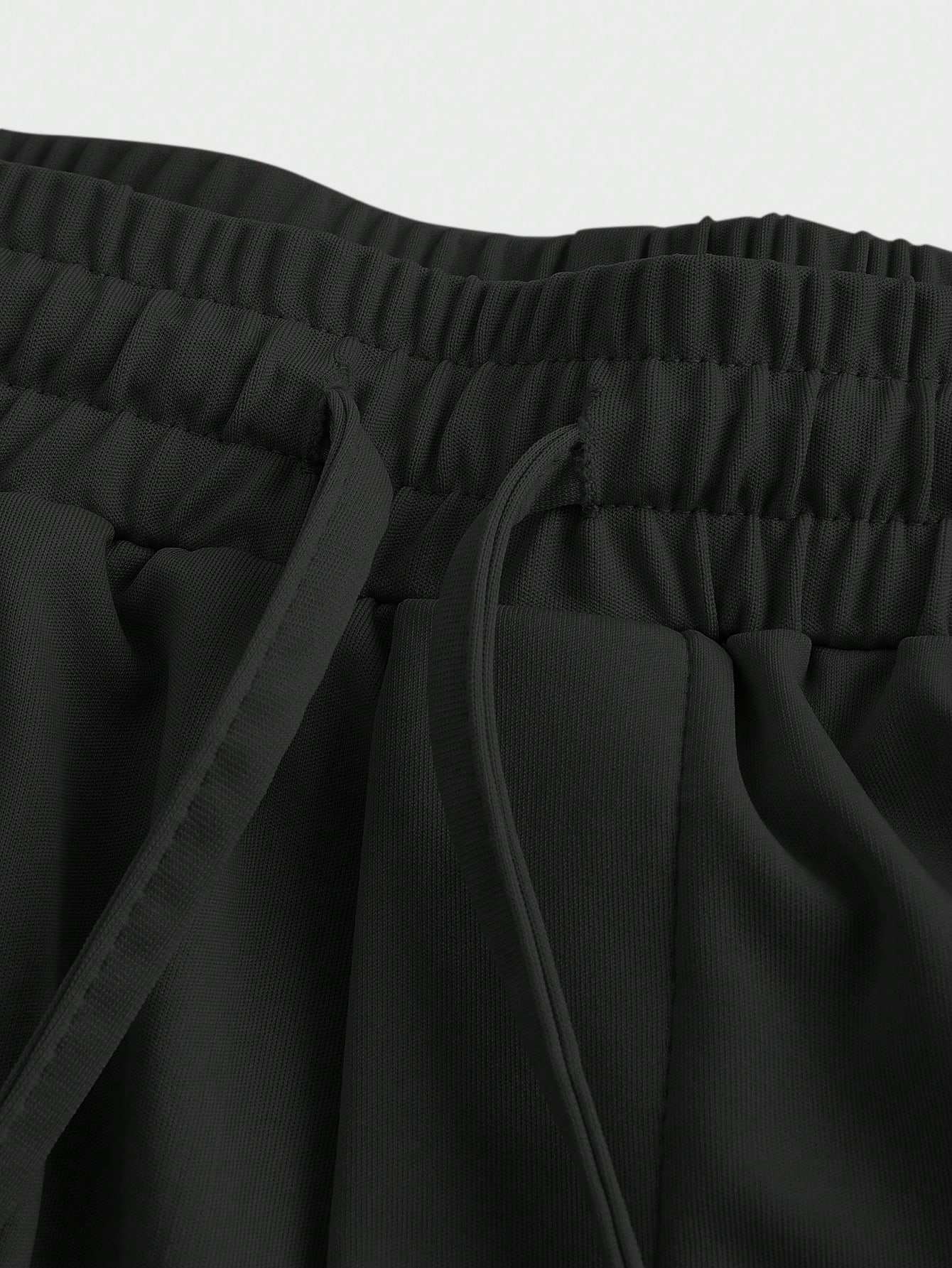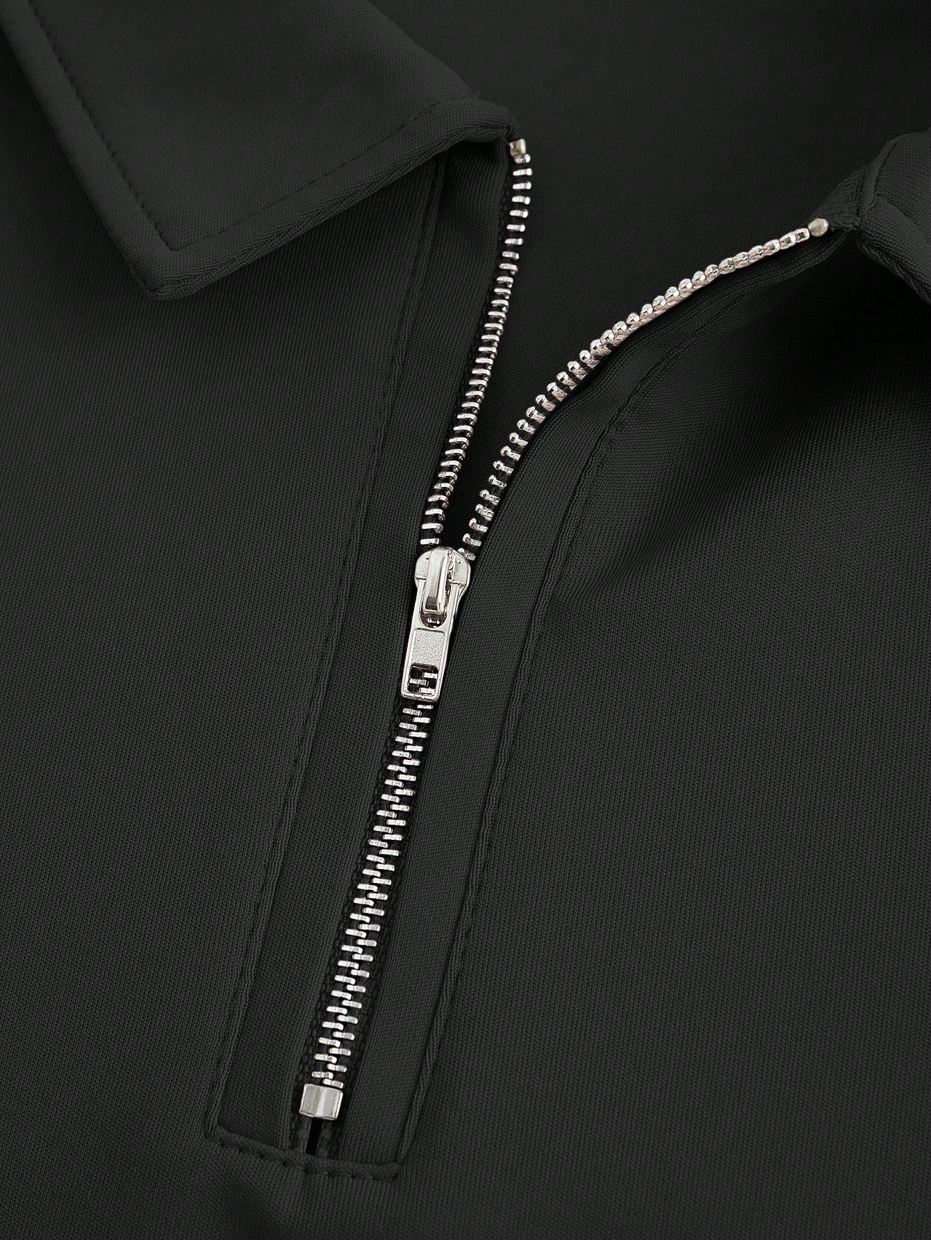 Manfinity KASUA Men’s Solid Color Half-Placket Zipper Short Sleeve Polo T-Shirt And Drawstring Waist Shorts Set, Summer