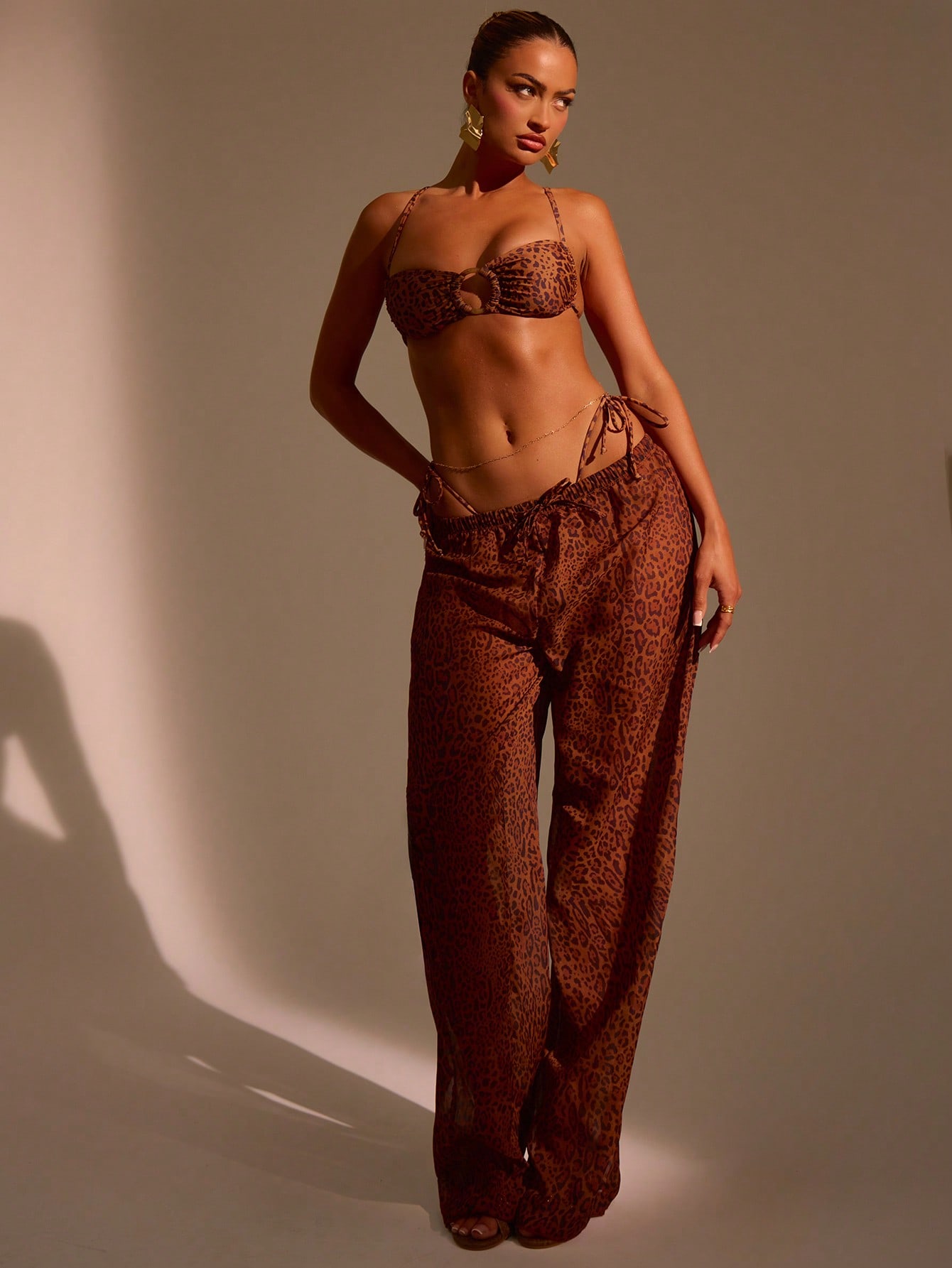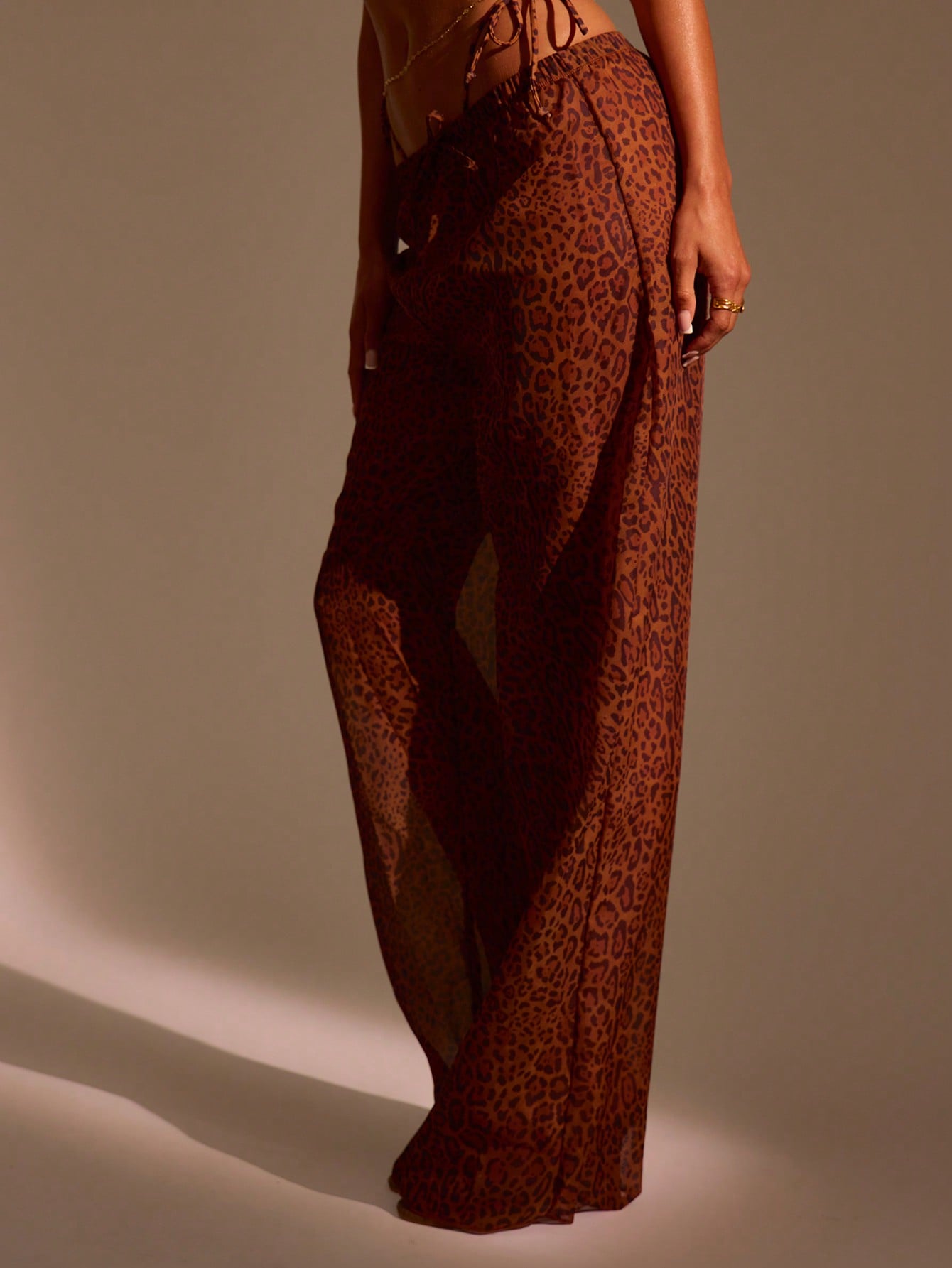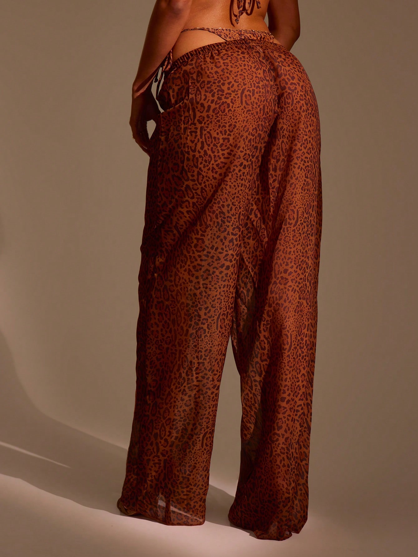 MUSERA Sheer Leopard Print Tie Waist Band Wide Leg Trousers Only