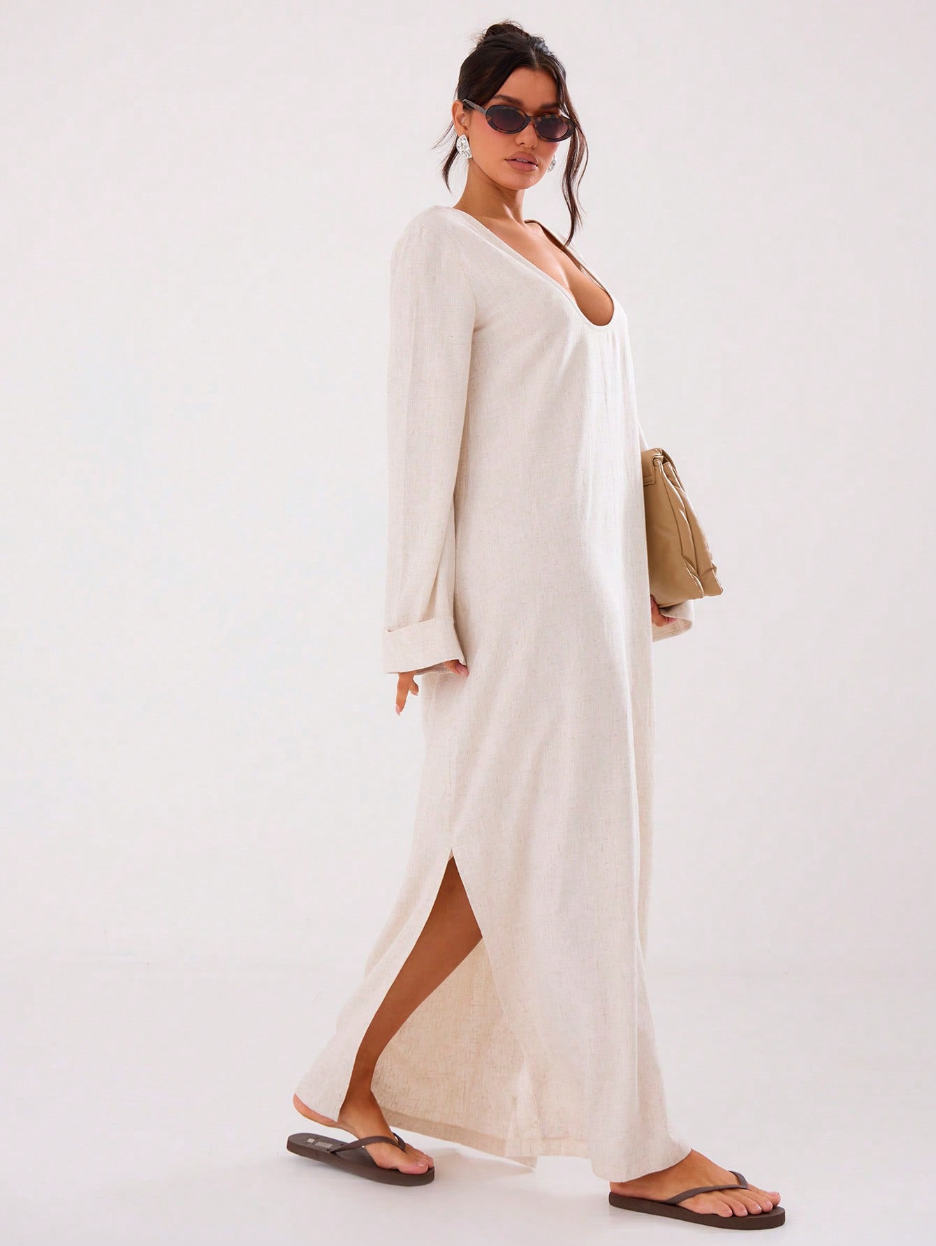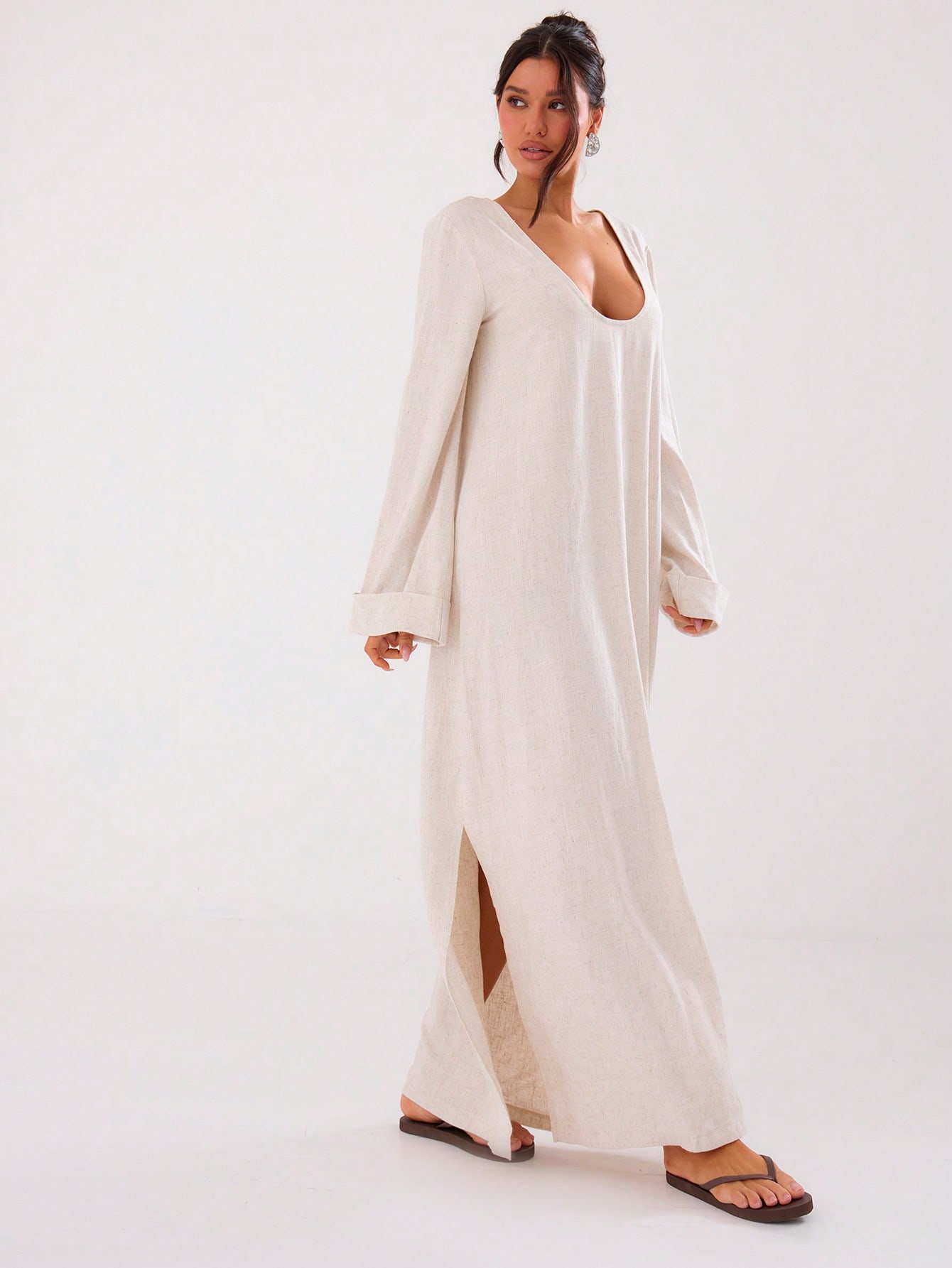 MUSERA Summer Loose Fit Low V Maxi Dress