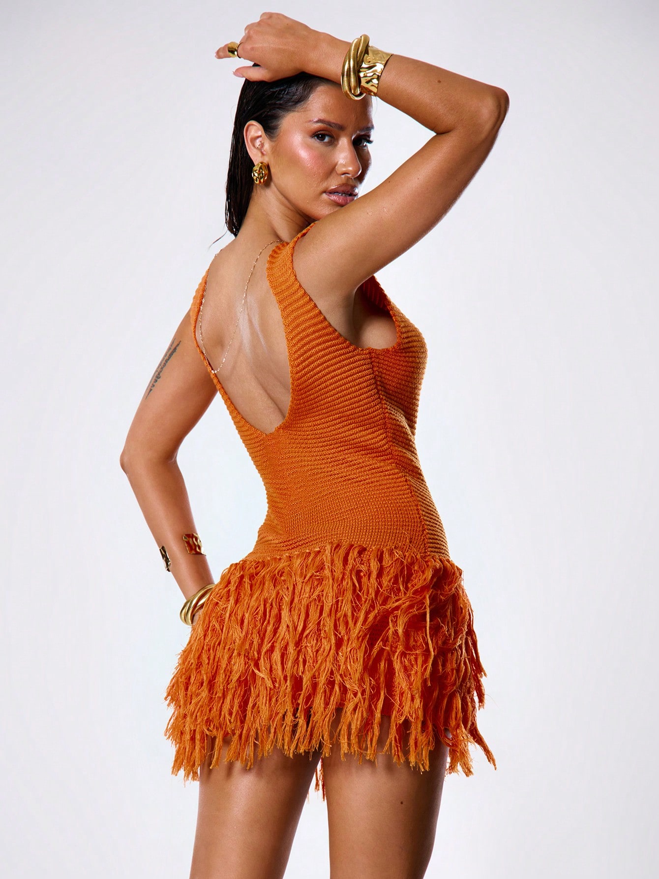 MUSERA Tassle Hem Crochet Knit Mini Dress