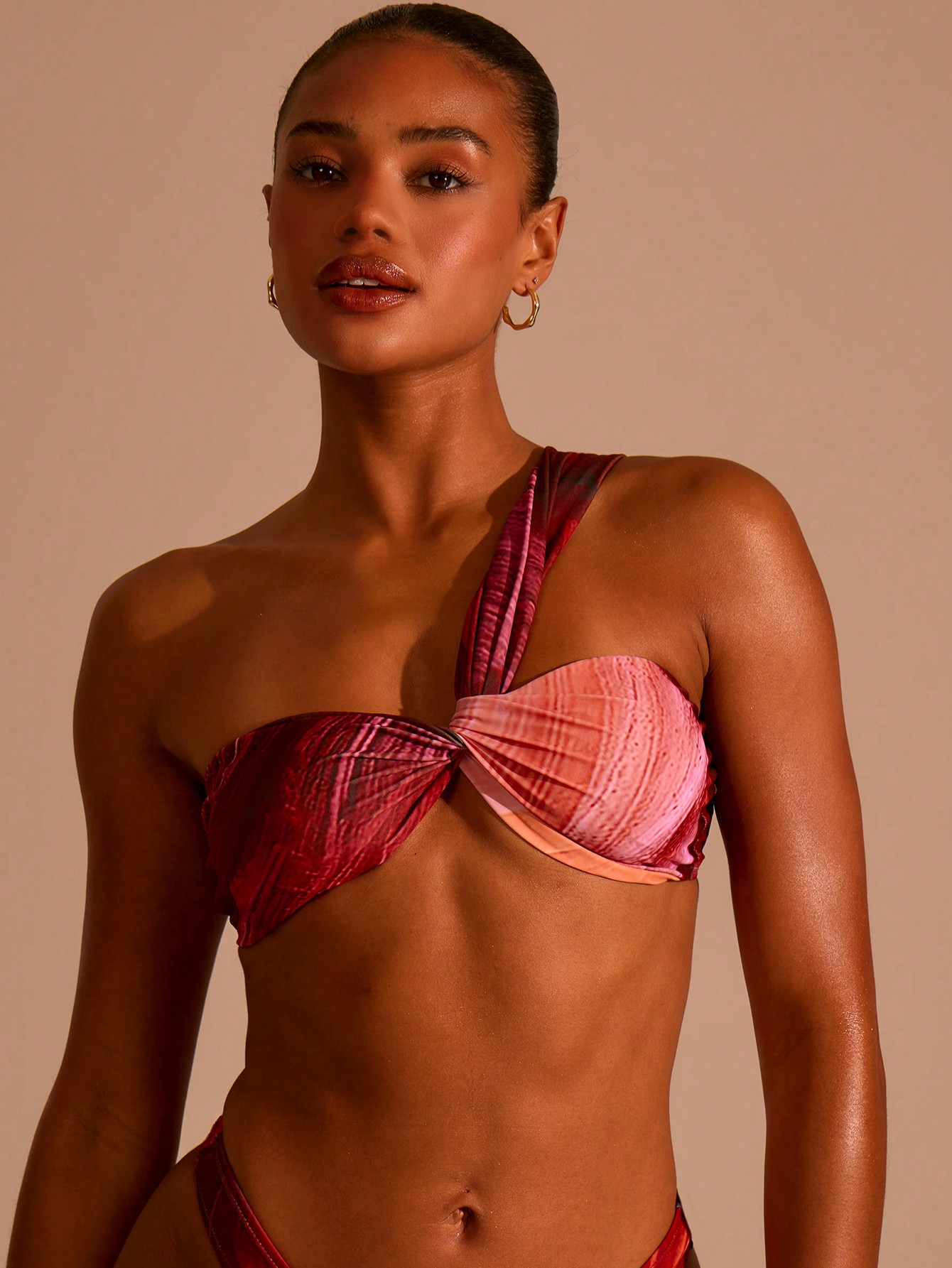 MUSERA Twist Ruched One Shoulder Bikini Top