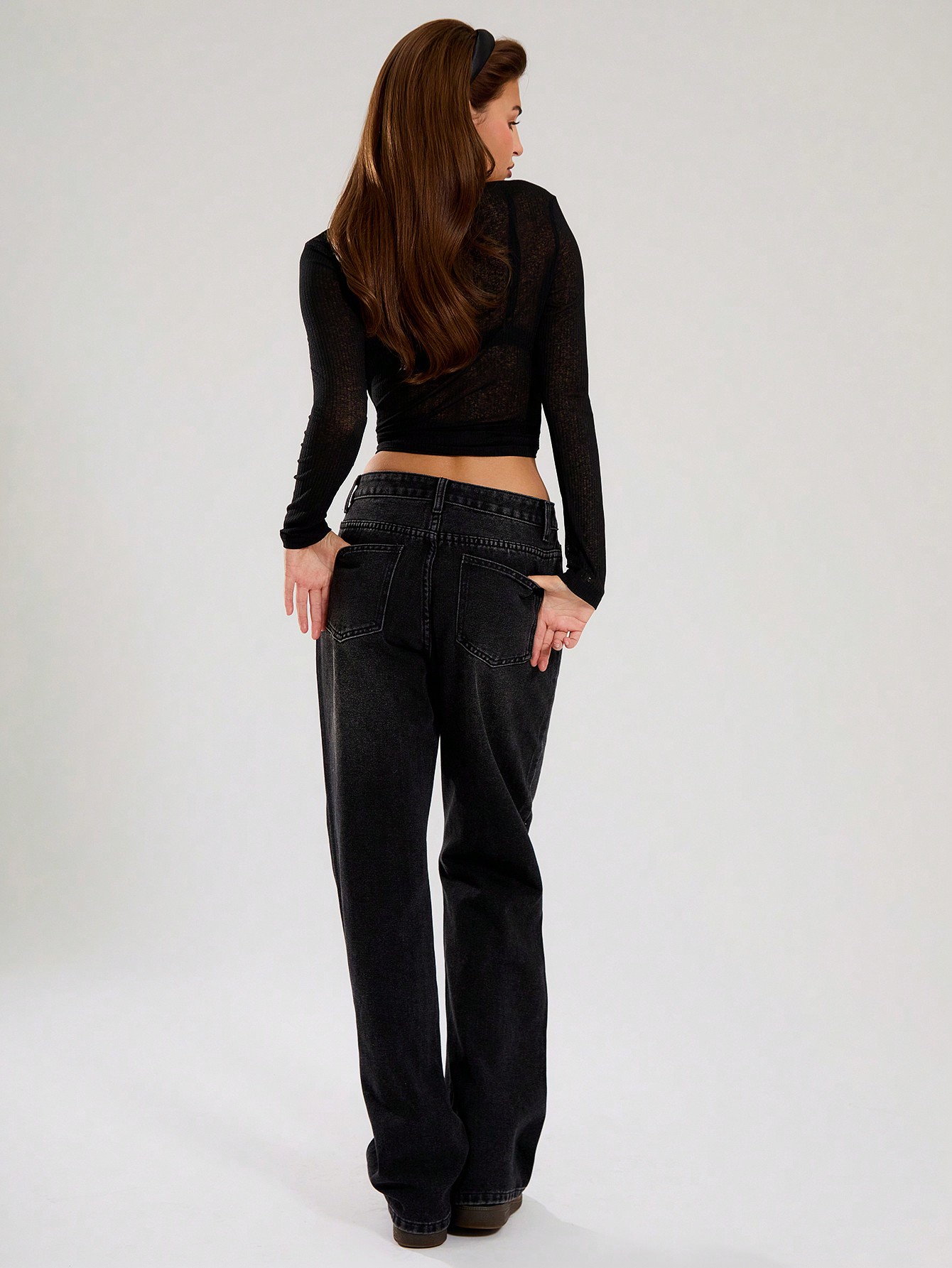 MUSERA Washed Black Straight Leg Jeans